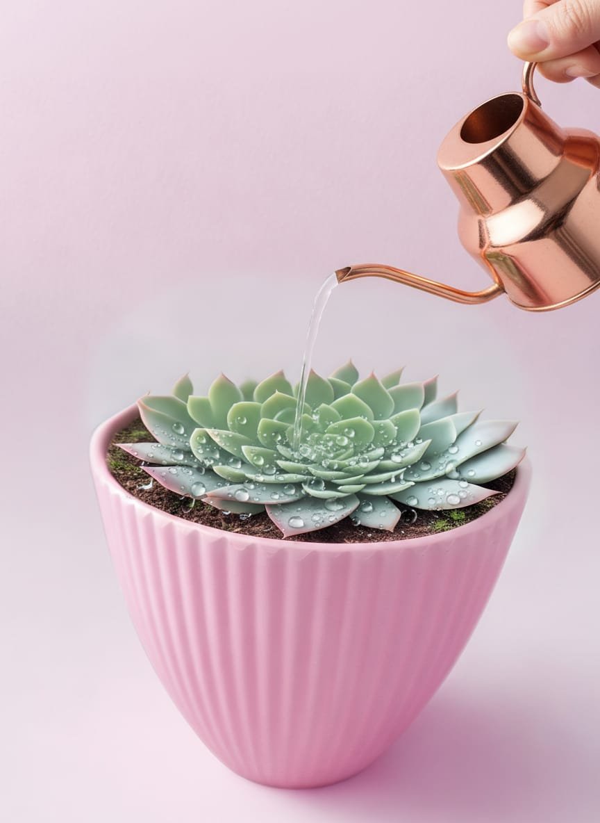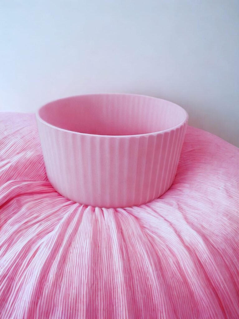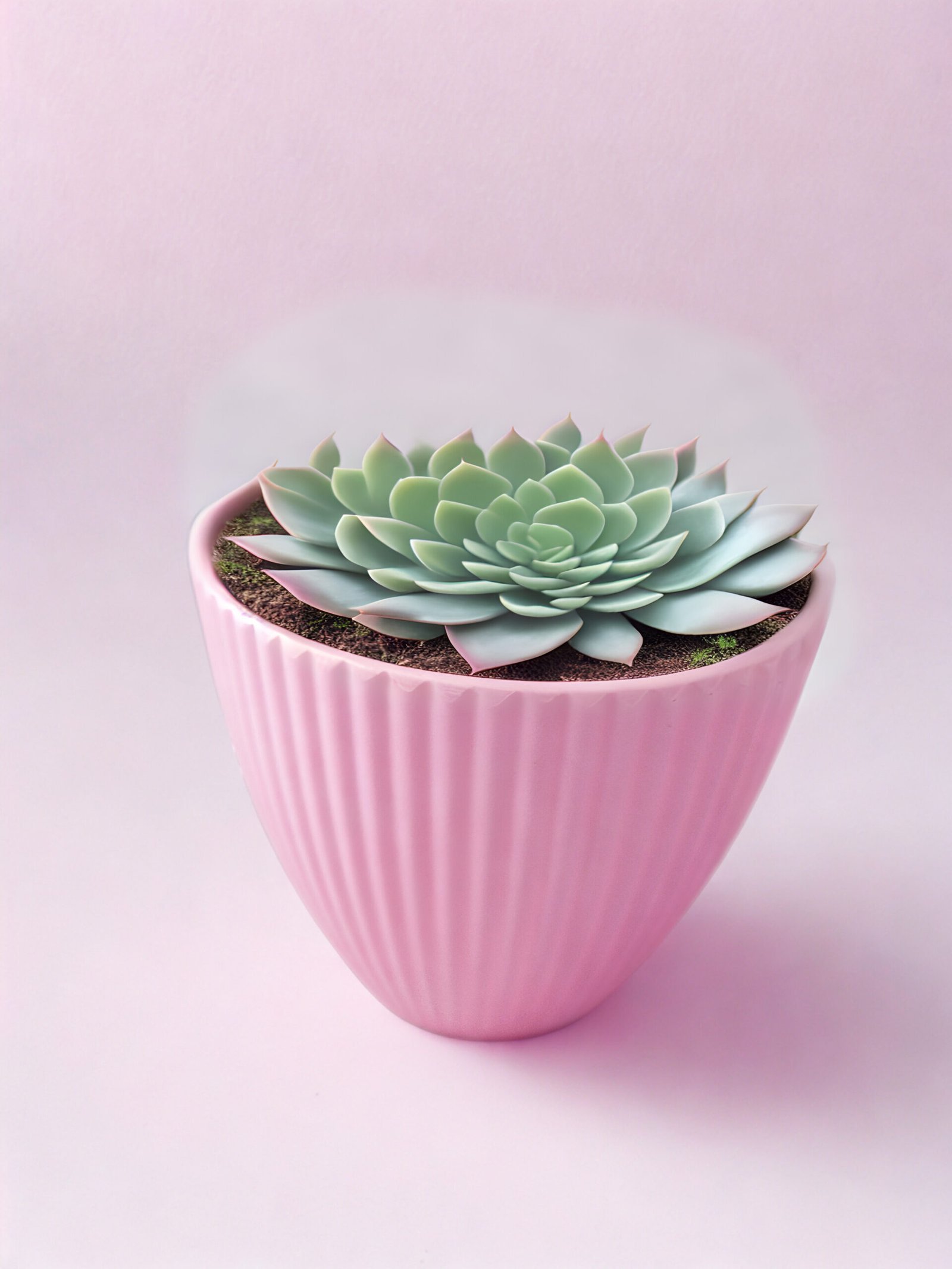 Macetero Estriado en Tono Rosa Suave Cerámica de Diseño. El Toque Dulce para tu Suculenta